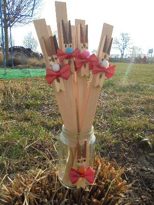 Jarní zápich si děti vyrobily z dřevěných špachtliček a kramlíků na prádlo. Tím, že mu daly podobu zajíce je ideální pro umístění do jarního oseníčka, ale využít se může třeba i na označení bylinek.