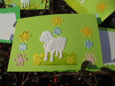 Velikonoční přání vlastnoručně vyrobené potěší určitě každého. Děti si ho vyrobily s motivem ovečky. Stačí připsat třeba"Bohatou pomlázku ", nebo" Veselé Velikonoce"